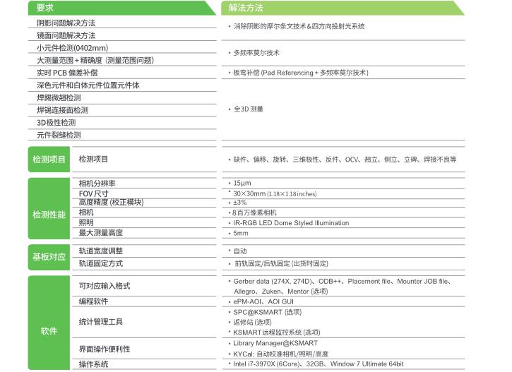 KOH YOUNG Zenith Alpha 3D AOI 利用Koh Young人工智能專利技術(shù)提高3D檢測性能 可適用于復(fù)雜產(chǎn)線的高速檢測 性價比好的設(shè)備 可檢測高元器件(Alpha HS+) 基于人工智能技術(shù)的3D幾何自動編程(KAP) KSMART 解決方案:基于全3D檢測的監(jiān)控系統(tǒng)