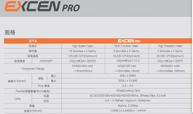 三星貼片機(jī)EXCEN PRO 配有16個吸嘴,旋轉(zhuǎn)式頭部的高速模塊式貼片機(jī),它實現(xiàn)了世界同級產(chǎn)品中的最高速度120,000CPH,也實現(xiàn)了世界最高的面積生產(chǎn)性。另通過元器件的貼裝前·后的監(jiān)控功能(SVS:Side-view Vision System)確保了微小元器件的貼裝信賴性,通過適用不停線基種變更、不同基板混流生產(chǎn)等多種動作模式及世界最初自動接料、自動供料功能的SMART Feeder,實現(xiàn)了作業(yè)便利性和實際生產(chǎn)性極大化